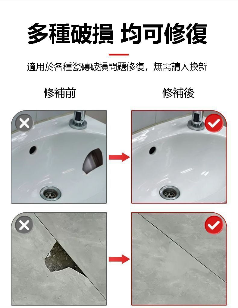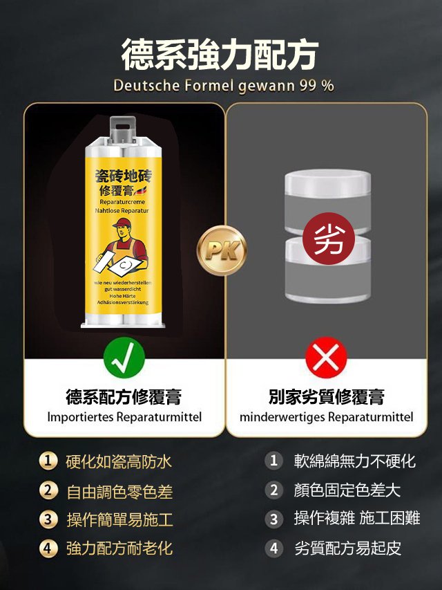 【官方正品】德國進口瓷磚修補膏!0色差!不管是瓷磚繃瓷還是洗手台開裂,輕鬆解決,可調任意顔色!