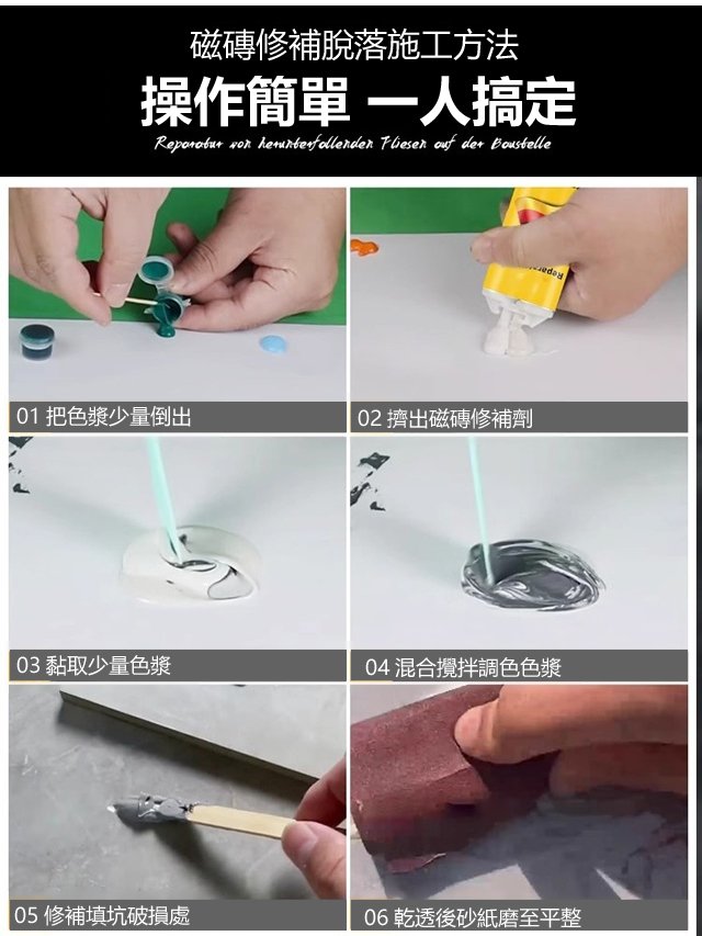 瓷磚修補膏+工具色漿